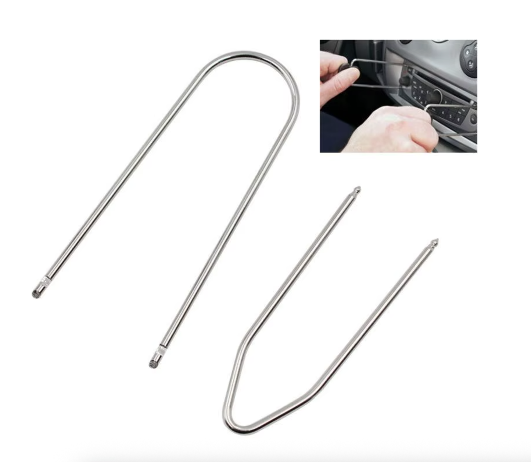 Set de 2 outils de démontage métallique pour démontage d'un autoradio 1 DIN